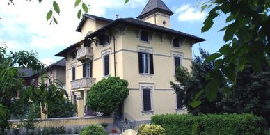 These are formal, stand-alone houses with courtyards and high-design gardens. In Piedmont, the Liberty style villa is common, characterized by multi faceted facades, columns, pointed window roofs, towers and grand approaches.